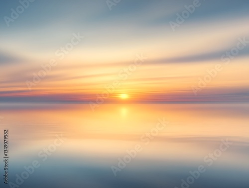 Obraz premium Serene Sunset: Calm Ocean Reflection at Dawn