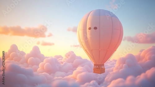 Fototapeta premium Serene Sunset Hot Air Balloon Ride Above Dreamy Cloudscape