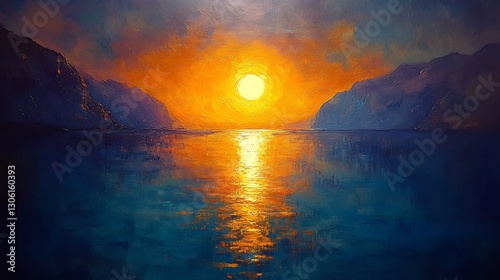 Naklejka premium Serene Sunset Landscape Painting Warm Hues Vibrant Colors. AI Generated