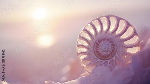 © Laily, Fototapeta premium Serene Sunset Nautilus Shell Beach Scene