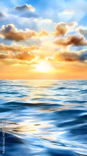 © terat, Obraz premium Serene Sunset Ocean: Calm Waterscape - Vibrant Color Palettes
