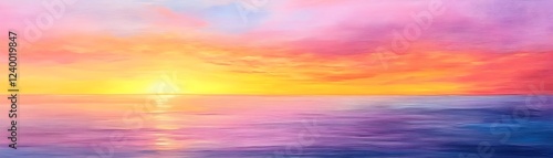© Priyanut, Obraz premium Serene Sunset: Ocean hues ablaze with vibrant colors.