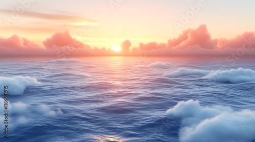 © Scoopy, Fototapeta premium Serene Sunset Ocean Scene With Clouds Above