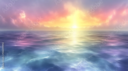 © maryatin, Obraz premium Serene Sunset Ocean Sky.