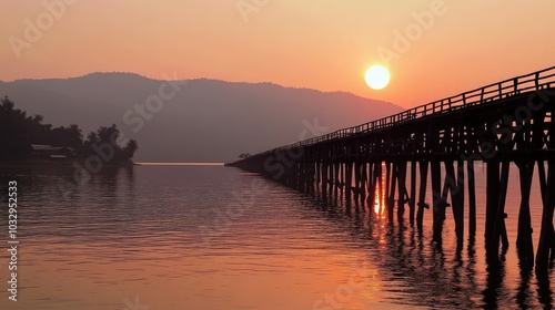 © Nuttaya Nampai, Obraz premium Serene Sunset Over a Peaceful Wooden Pier