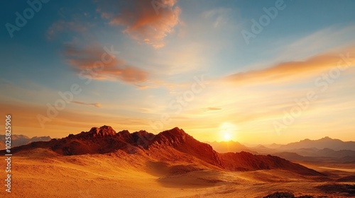 © Dot. Studio, Naklejka premium Serene Sunset Over a Vast Desert Landscape