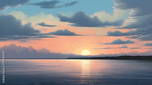 Obraz premium Serene Sunset Over Calm Lake Water And Silhouetted Trees