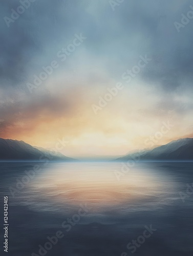 Fototapeta premium Serene Sunset Over Calm Mountain Lake Waters