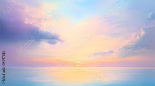 © Neungruedee, Fototapeta premium Serene Sunset Over Calm Ocean Waters