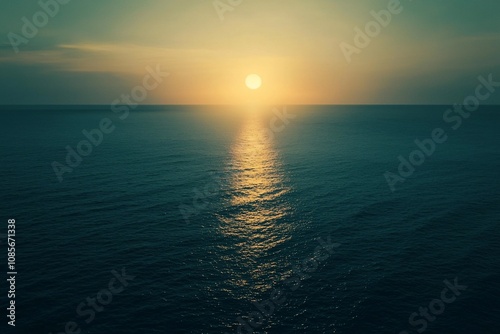 © Adi, Naklejka premium Serene Sunset Over Calm Ocean Waters