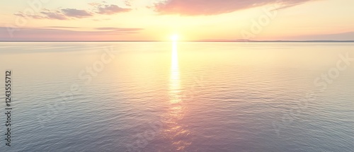 Fototapeta premium Serene sunset over calm ocean waters.