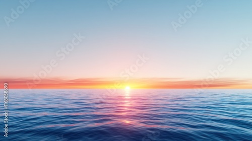 Obraz premium Serene sunset over calm ocean waters, creating a tranquil atmosphere.