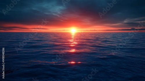 © Namdang, Fototapeta premium Serene Sunset Over Calm Ocean Waters with Dramatic Sky Colors