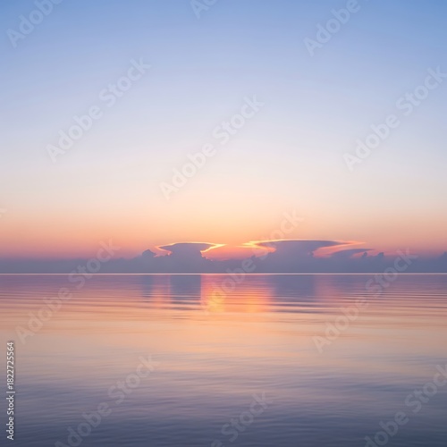 © Bawang, Fototapeta premium Serene Sunset Over Calm Ocean Waters with Faint Clouds.