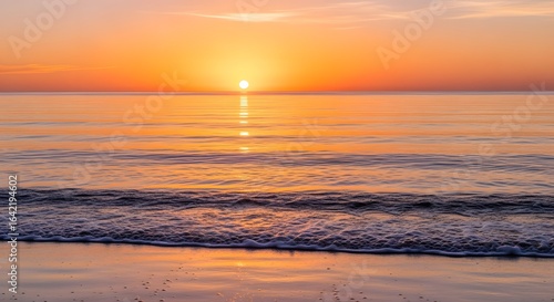 © Gilang, Fototapeta premium Serene Sunset Over Calm Ocean with Vibrant Orange and Pink Sky
