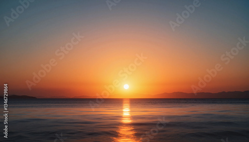 Naklejka premium Serene sunset over calm sea, tranquility and beauty of nature