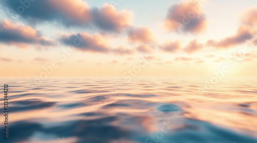 © CLOVER BACKGROUND, Obraz premium Serene Sunset Over Calm Sea with Soft Clouds and Gentle Colors