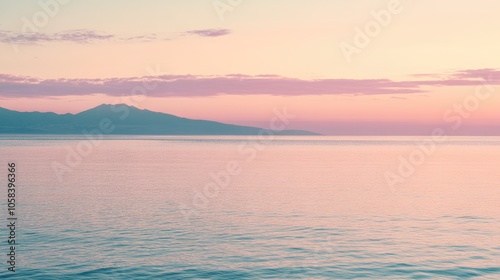 © Matcha_09, Fototapeta premium Serene Sunset Over Calm Water and Mountain Range