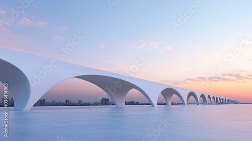 Obraz premium Serene Sunset Over Elegant Bridge Structure