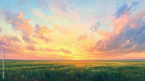 © U.D.I.N, Fototapeta premium Serene Sunset over Endless Fields