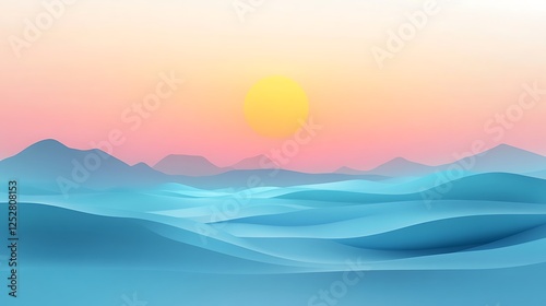 © Lepo, Fototapeta premium Serene Sunset Over Gentle Blue Rolling Hills