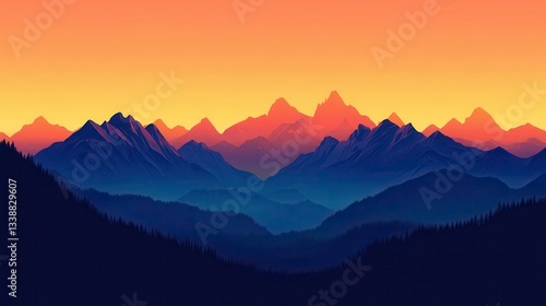 Obraz premium Serene Sunset Over Majestic Mountain Range A Digital Landscape Illustration