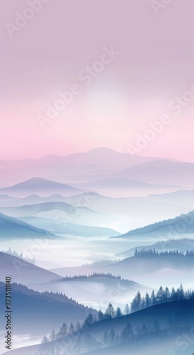 Fototapeta premium Serene Sunset Over Misty Mountain Range Landscape Illustration