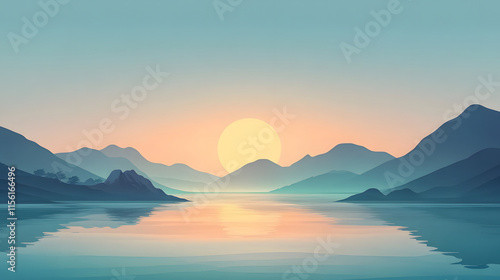 Fototapeta premium Serene Sunset Over Mountain Lake Landscape