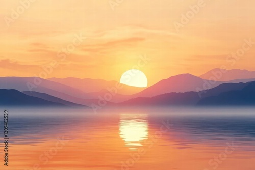© Irfanan, Fototapeta premium Serene Sunset Over Mountains and Calm Water