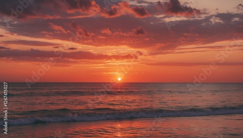 © -Quantum Pixels-, Obraz premium Serene Sunset Over Ocean Waves Perfect for Text Overlay and Inspirational Quotes