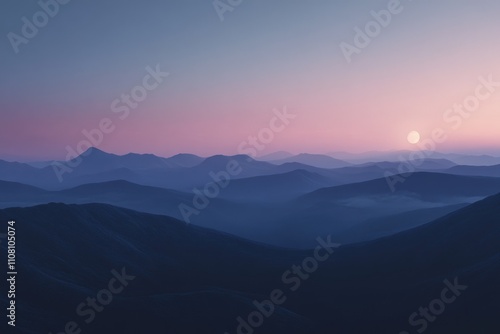 Obraz premium Serene Sunset Over Rolling Mountain Ranges