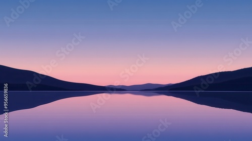 © SuperStockGallery, Fototapeta premium Serene Sunset Over Still Lake with Mountain Reflections.
