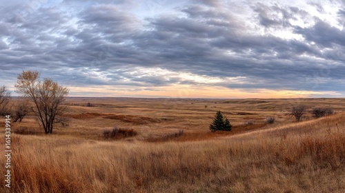 Fototapeta premium Serene Sunset Over the Golden Prairie
