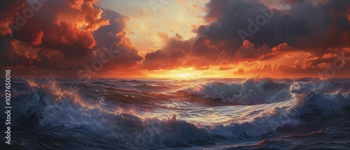 Fototapeta premium Serene Sunset Over the Ocean Waves