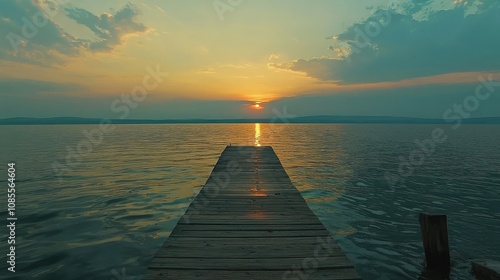 Obraz premium Serene Sunset Over Tranquil Lakeside Dock