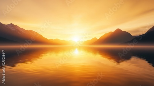 © FoxGrafy, Fototapeta premium Serene sunset over tranquil mountain lake
