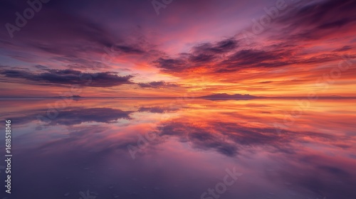 Fototapeta premium Serene Sunset Reflection in Salt Flat Landscape