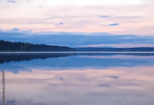 © Ahmad, Fototapeta premium Serene Sunset Reflection on a Calm Lake