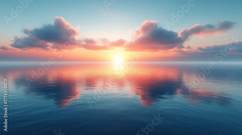 © RizalAziz, Fototapeta premium Serene Sunset Reflection on Calm Ocean Waters with Cloudscape.