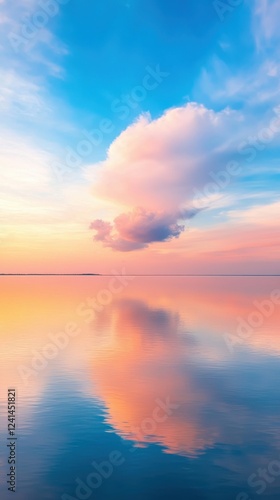 © xbzz, Fototapeta premium Serene sunset reflection over calm waters tranquil lake nature peaceful environment wide angle natural beauty