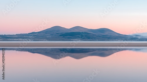 © Anugrah, Fototapeta premium Serene Sunset Reflection Over Coastal Mountains
