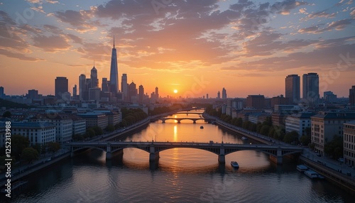 © GIFTE, Fototapeta premium Serene sunset reflection over nyc skyline