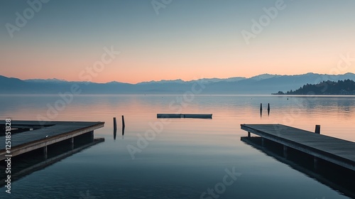 © Mitchell, Obraz premium Serene sunset reflections over calm lake mountainous backdrop landscape photography tranquil environment wide-angle view