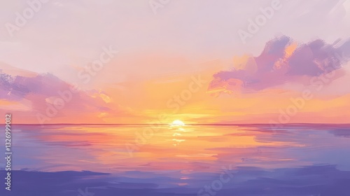© Khaisan, Fototapeta premium Serene sunset seascape with pastel hues in an expressive brushstroke style