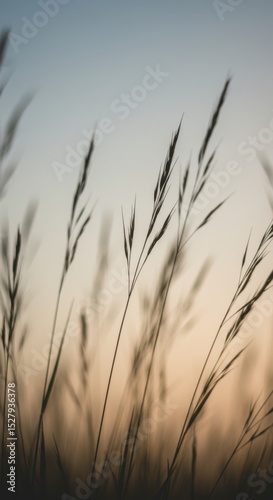Obraz premium Serene Sunset Silhouette: Tall Grasses Swaying Gently in the Golden Hour Light