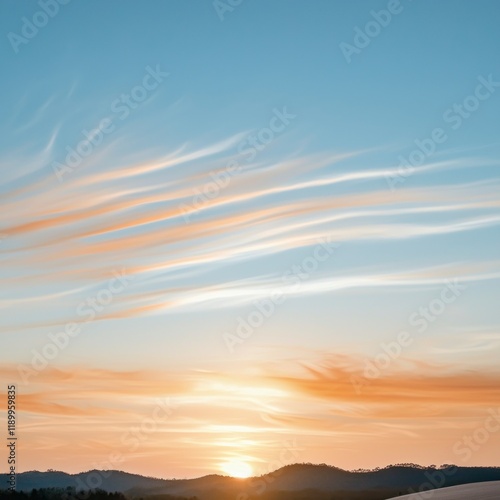 Fototapeta premium Serene Sunset Sky Peaceful Orange and Blue Gradient Cloudscape