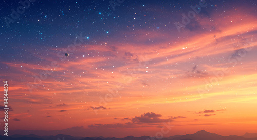 © FIK, Fototapeta premium Serene Sunset Sky Stars Moon Mountains Night