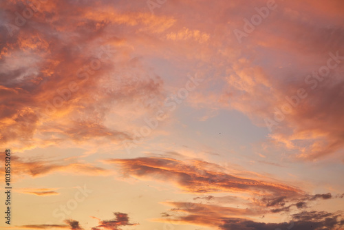 © Ryzhkov Oleksandr, Fototapeta premium Serene Sunset Sky with Fiery Clouds