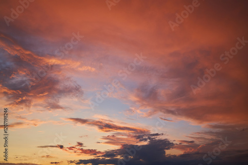 © Ryzhkov Oleksandr, Fototapeta premium Serene Sunset Sky with Fiery Clouds