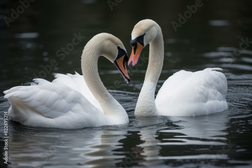 © juliars, Fototapeta premium Serene Swans love lake water. Fauna water. Generate Ai
